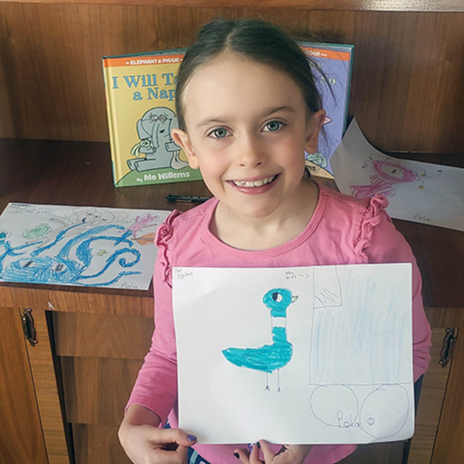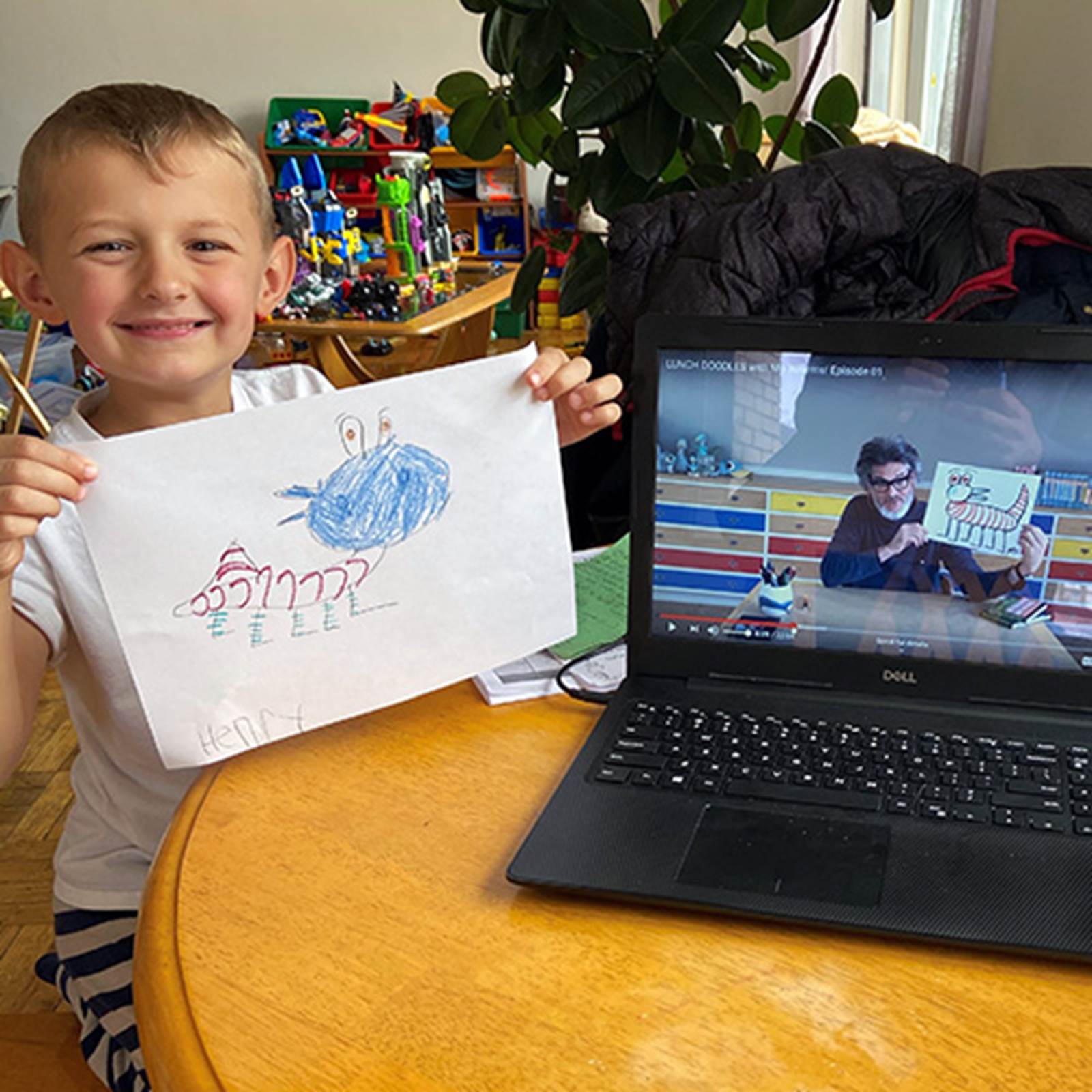 Around the world, people of all ages have joined Mo Willems in his studio for weekday LUNCH DOODLES. The three-week run, all 15 episodes and their downloadable activities, are archived below. Let the doodling continue! Please tag your artwork on social media with #MoLunchDoodles so that we can all see it!