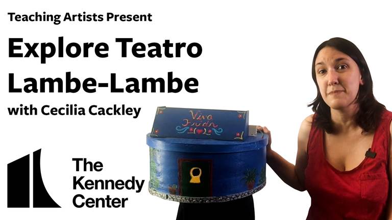 Teaching artist Cecilia Cackley shows how to create a tiny, magical world in the style of teatro lambe-lambe puppetry using small objects found in the home.