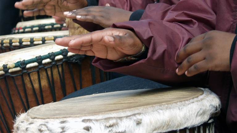 You can’t have African dance without music. The two are inseparable; the dancers are drumming and the drummers are dancing. Learn about two drums—the cajon and djembe —and how to play a rhythm called Funga.