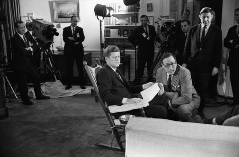President Kennedy with CBS producers Fred Friendly and Don Hewitt during the filming of “After Two Years: A Conversation with the President” at the White House, 1962.