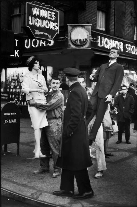 John and Jacqueline Kennedy mannequins, New York City, 1961.