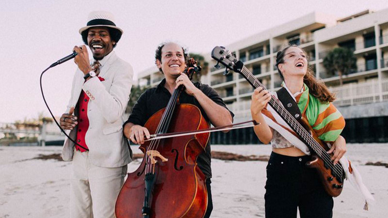 Biribá Union features Mike Block (cello, vocals), Christylez Bacon (beatbox, guitar, rhymes), and Patricia Ligia (electric bass, pandeiro, vocals), forming a dynamic trio that blends original music with global influences, creating a fresh and accessible sound.